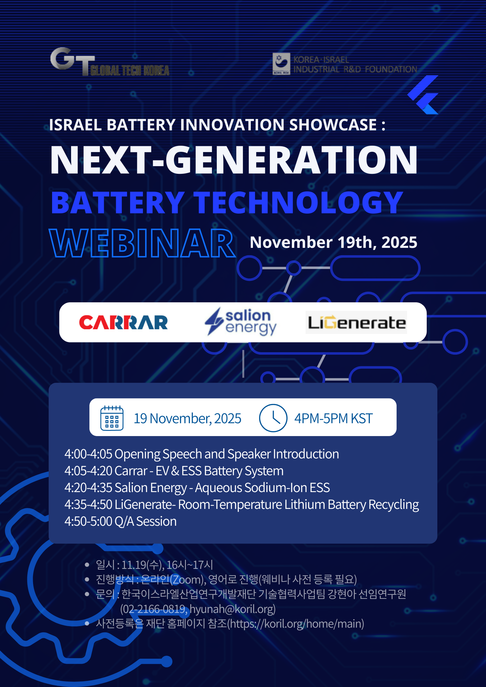 2025년 이스라엘 차세대 배터리 기술 웨비나 안내 (25.11.19(수), 16:00)